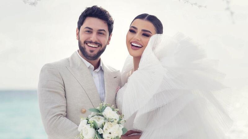 نشرت الإعلامية السورية لين أبو شعر صور زفافها مع زوجها البلوجر كريم ديب في جزر المالديف الرومانسية، وتألقت بفستان زفاف بتصميم رائع وراقي من المصمم السوري رامي العلي.