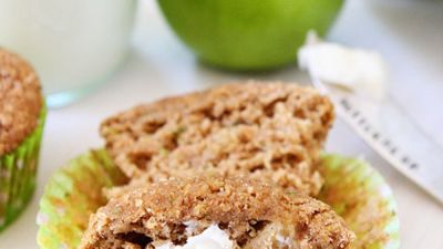 في وعاء كبير، يخفق الطحين والسكر البني وصودا الخبز ومسحوق الخبز والملح والقرفة وجميع التوابل. في وعاء صغير، يخفق مخيض اللبن مع الزبدة، عصير التفاح ، الزيت ، البيض ، ومستخلص الفانيليا. تصب المكونات الرطبة على المكونات الجافة وتخلط بملعقة خشبية حتى تمتزج معاً. لا تخلط أكثر. قم بتقليب التفاح المبشور والكوسا والتفاح المفروم.