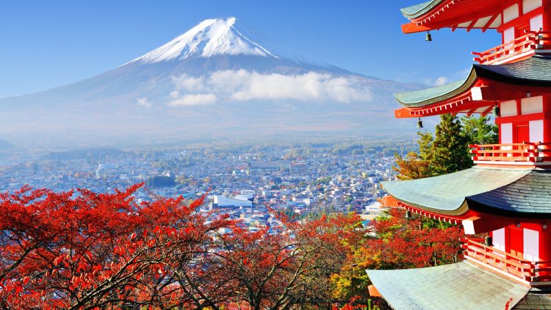 جبل فوجي هو رمز اليابان ومن أجمل المناظر الطبيعية في العالم، ويمكن تسلّقه في الصيف أو الاستمتاع بمشاهدته من بحيرات كاواجوتشي أو هاكوني.