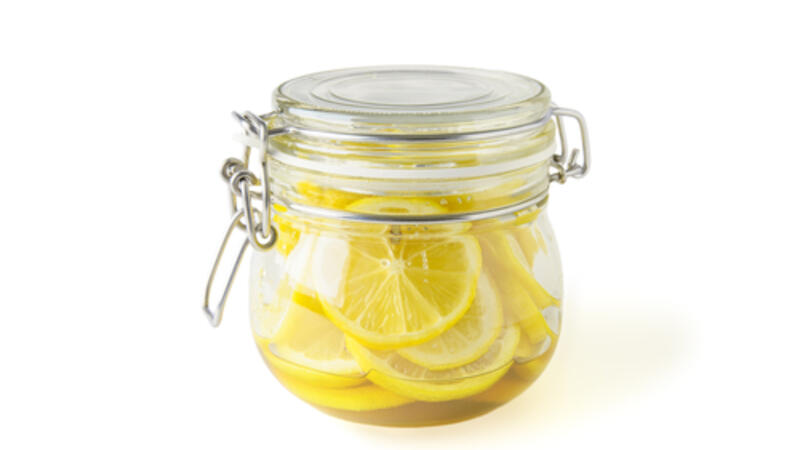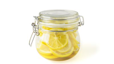 بعدها يتم وضع الليمون فى برطمان زجاجي