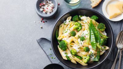 6- وزعي المعكرونة في أطباق، ثم انثري الجبن على الوجه مباشرة قبل التقديم.