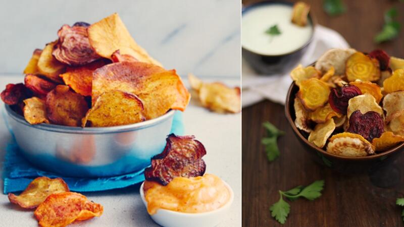 مقبلات رقائق الخضروات الصحية المصنوعة من جذور الخضراوات الطازجة دون نكهات أو اضافات..