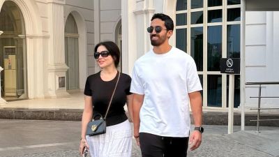 نشر زوج مي عز الدين أحمد تيمور صور عبر حسابه الشخصي على "إنستغرام" أظهر فيها الثنائي بإطلالات متناسقة اعتمدت على اللونين الأبيض والأسود، وبدا عليهما السعادة والمرح خلال التقاط الصور والتجول في أحد الشوارع خلال شهر العسل.