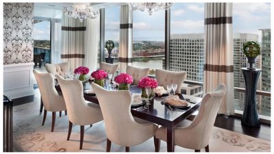• إذا كان صاحب المنزل لا يفضّل وجود الثريات، فيمكن تصميم صندوق "بوكس" حول السقف يتضمّن الإضاءة المخفية والسبوتات، مع توزيع الأباجورات الجانبية على طاولة السفرة، والإكسسوارت التي تؤمن الإضاءة على طاولة البوفيه.