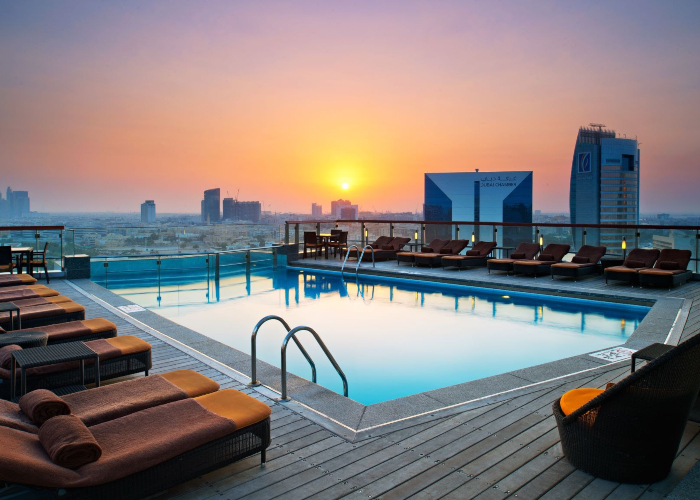وتمتاز بركة السباحة بموقعها على سطح الفندق وإطلالاتها الجميلة على خور دبي والخليج العربي، فيما يقدم الفندق لضيوفه إجازة لا تنسى في العيد. ومع كل غرفة يحجزها الضيوف، يحصلون على وجبة إفطار مجانية في جلاس هاوس براسيري بالإضافة إلى وجبة من ثلاثة أطباق في مطعم أوليريز ذي الطابع الأمريكي. وينتظر الضيوف كذلك خصم قدره 20% على كافة خدمات الطعام والشراب وغسيل الملابس مع الترقية المجانية إلى الدرجة التالية من الغرف (باستثناء الأجنحة)، مع إمكانية ترتيب استلام الغرف المبكر والمغادرة المتأخرة عند الطلب (حسب توفر الغرف).