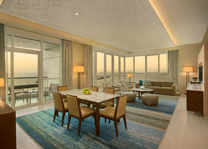 لمن يرغب بالاستمتاع تحت أشعة الشمس وبالرمال، فالخيار الأمثل هو فندق دبل تري باي هيلتون دبي - شاطئ جميرا. وبفضل الغرف الفسيحة وخيارات الطعام اللذيذة والإطلالات الخلابة، فإن الفندق سيكون المكان المثالي لإقامة عائلية خلال العيد. يمكن للمقيمين الاختيار من بين أجنحة بغرفة نوم واحدة أو غرفتين أو ثلاث غرف لقضاء عطلاتهم، بأسعار تبدأ من 978 درهمًا إماراتيًا.
