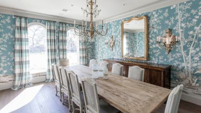 استخدمي نفس ورق الجدران في الغرف المتصلة، مثل غرفة المعيشة والصالون .