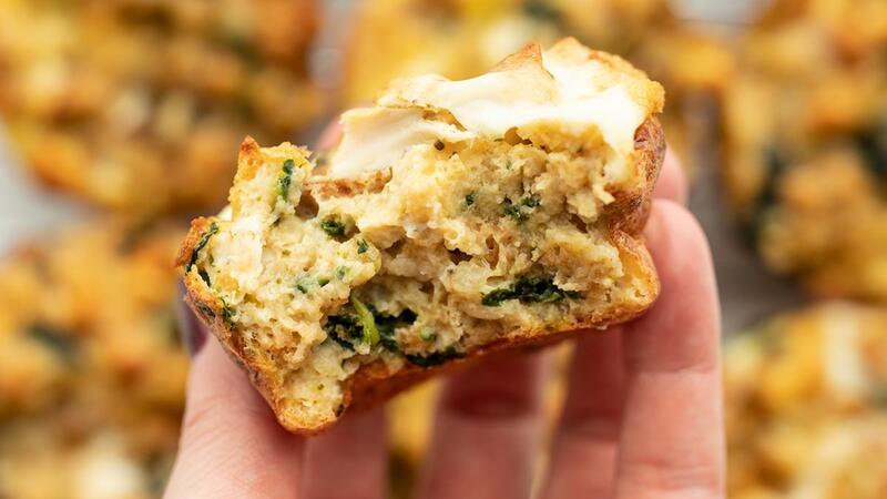 - سخني الفرن إلى 375 درجة. ادهني قالب الكعك بالزبدة أو الزيت أو بخاخ غير لاصق. قم بإذابة الثلج واعصري السبانخ حتى تجف.