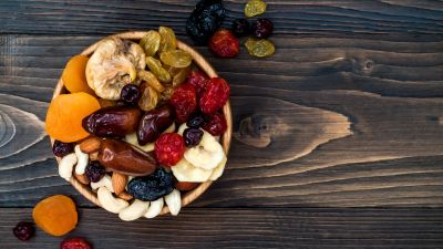 اخلطي 150 غراماً من جوز البقان المنقوع في ماء فاتر ساعة على الأقل مع 100 غرام من الزبيب المنقوع وملعقة كبيرة من هريسة السمسم وملعقة كبيرة من زيت جوز الهند.