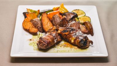 طبق أنيق سهل التحضير مناسب لعشاء شخصين ويمكن مضاعفة المقدار وإعداده للولائم بقياس الأصابع الصغيرة (كوكتيل) المناسب للتقديم كنوع من المقبلات في حفلات الاستقبال.