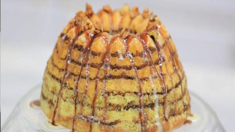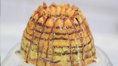 • تخرج الكيك من الفرن وتترك حتى تبرد تمامًا ثم يوزع فوقها الصوص وتقدم.