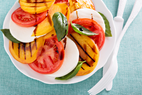 يضاف الخوخ والعسل إلى سلطة كابريزي الكلاسيكية لنكهة حلوة ولذيذة للصيف، وتعتبر سلطة كابريزي طبق سلطة من المطبخ الإيطالي، تُحضّر من شرائح الطماطم الطازجة و شرائح الموتزاريلا والريحان وتتبل بملح الطعام وزيت زيتون.