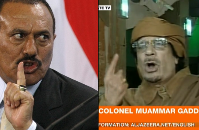 الألقاب التي أطلقها الرؤساء على معارضيهم: القذافي وصفهم بالفئران و القطط أما علي عبدلله صالح فقال بأنهم قطاع الطرق وسارقو الغاز.
