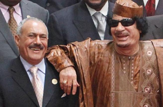 في مفارقة غريبة: القذافي ينصح علي عبدالله صالح بالتنحي حقنا للدماء!.