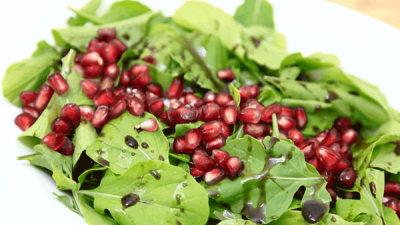 سلطة الربيع بالجرجير والرمان، طبق صحي ومناسب للريجيم.