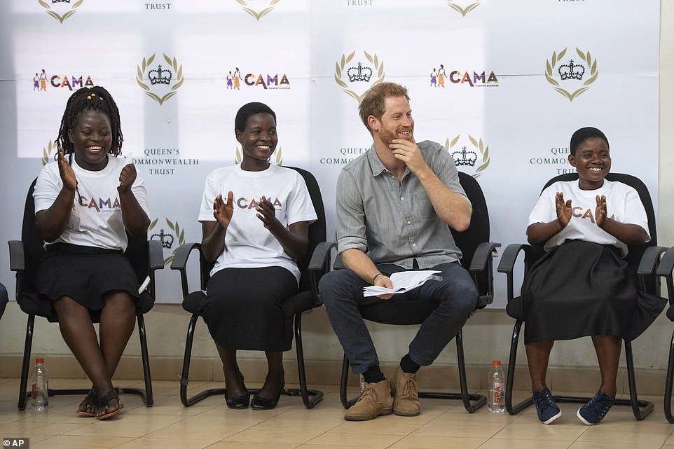 وانتقل بعد ذلك إلى مكتبة الكلية للقاء 40 امرأة شابة من CAMA لمناقشتهم حول التعليم وتمكين الشباب، إلا أن الأمير هاري فاجأ النساء عندما أخبرهم: "أعلم أن هناك شخصاً آخر تفضلن أن تسمعن النصائح منها أكثر مني، وآمل أن لا تفشل التكنولوجيا في أن نشاهد هذا الشخص على الشاشة".