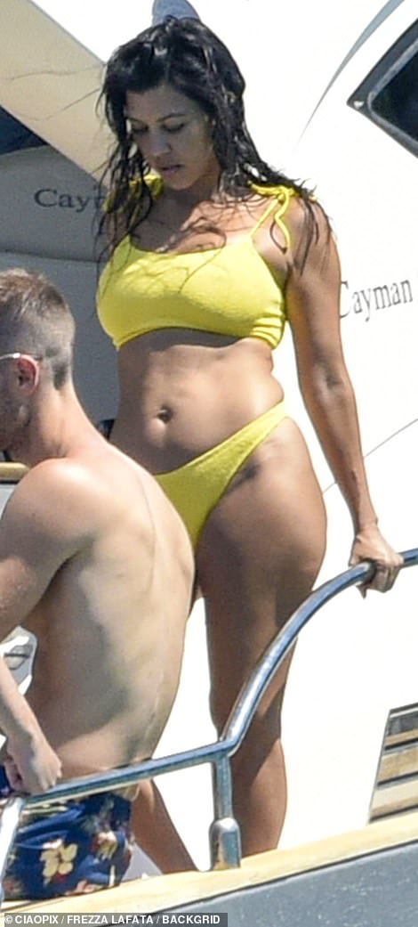 وكانت كورتني تستمتع بوقتها يوم الجمعة على اليخت خلال عطلة عائلية في جزيرة "كورسيكا" الفرنسية، ولفتت الأنظار بمايوه بكيني أصفر جذاب، ولكن وفقًا لصحيفة "ديلي ميل" البريطانية، لفتت كورتني الأنظار أيضًا بشكل جسمها الذي بدا مختلفًا عن العادة.