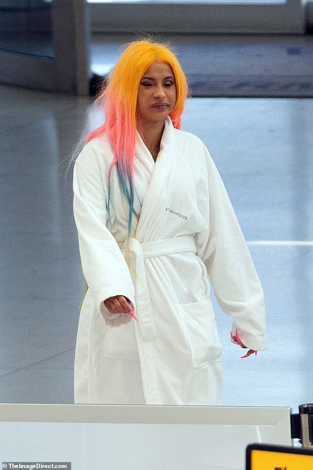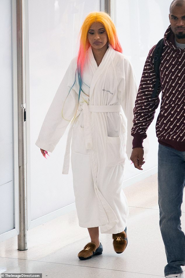 بالصور: كاردي بي بروب الاستحمام وشبشب في المطار.. الراحة أولًا!