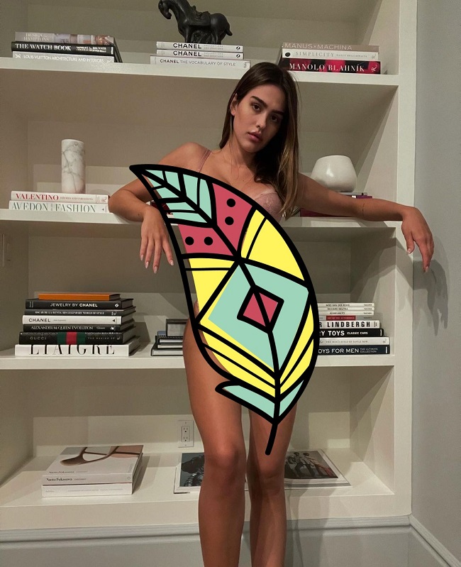 وظهرت عارضة الأزياء في الصورة وهي تروّج لعلامة تجارية من الملابس الداخلية في المملكة المتحدة، حيث كانت ترتدي بكيني كامل باللون البيج، وعلّقت على جلسة التصوير: "هناك مجموعة اخرى مثيرة من الملابس الداخلية من العلامة bouxavenue #designedinlondon".
