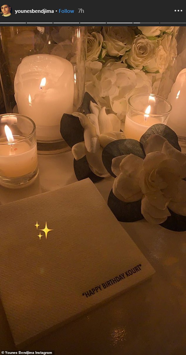 احتفلت نجمة تلفزيون الوافع "كورتني كارداشيان" بعيد ميلادها الأربعين، وسط أجواء احتفالية عائلية تضمنت حضور بعض الأصدقاء إلى مكان الاحتفال يوم الخميس، وكان من ضمن الحضور حبيبها السابق "يونس بنجيما"، الذي شارك في بعض الللقطات من حفلة عيد ميلادها.