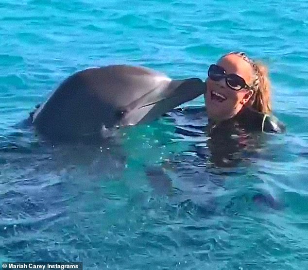 وظهرت ماريا وهي ترتدي بدلة السباحة ونظارة شمسية كما اعتمدت تسريحة ذيل الحصان، ونشرت فيديو عبر حسابها فظهر دلفين وهو يقبلها وأبدى إعجابه بها.