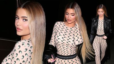 2- اعتمدت كايلي جينر اللون البني الداكن والخصل الشقراء.