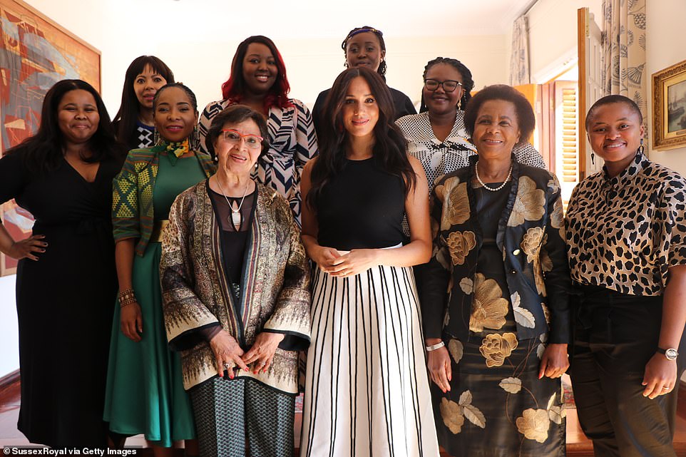 فحضرت ميغان حدث تكريم قائدات في كيب تاون، حيث تحدثت إلى مجموعة من الناشطين والسياسيين البارزين والمناهضين لنظام الفصل العنصري، وحثت جميع النساء الشابات المنظمات والناشطات على مواكبة ما يفعلن على الرغم من العقبات التي قد تعترض طريقهن.