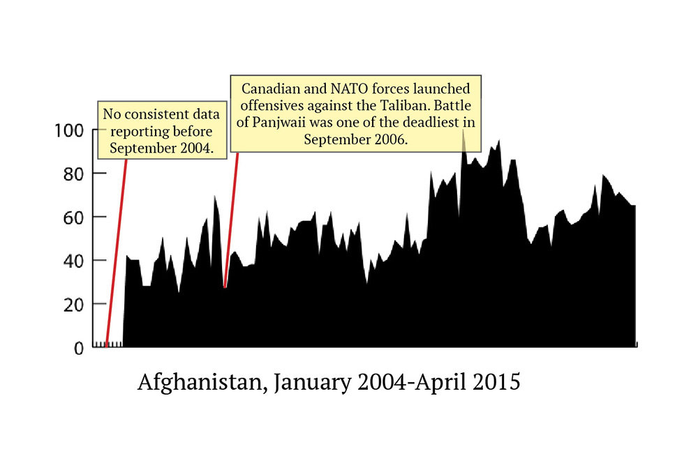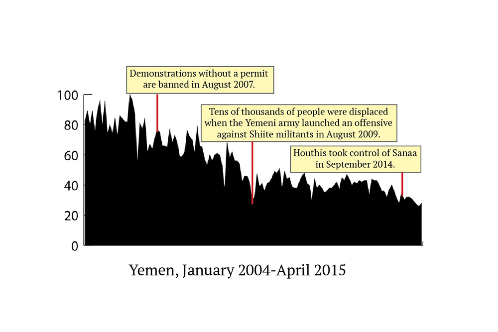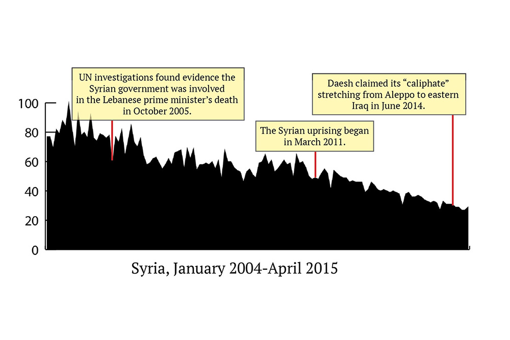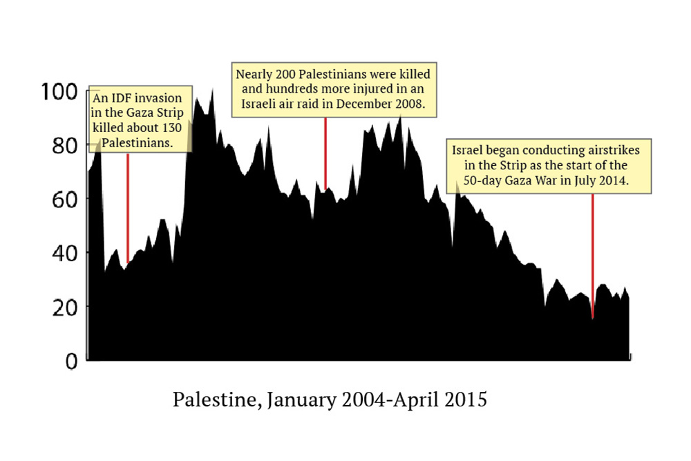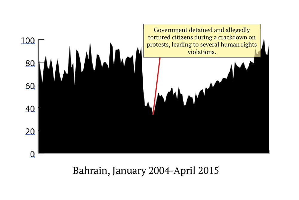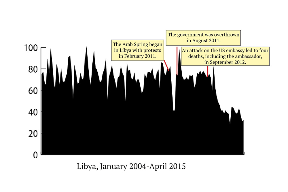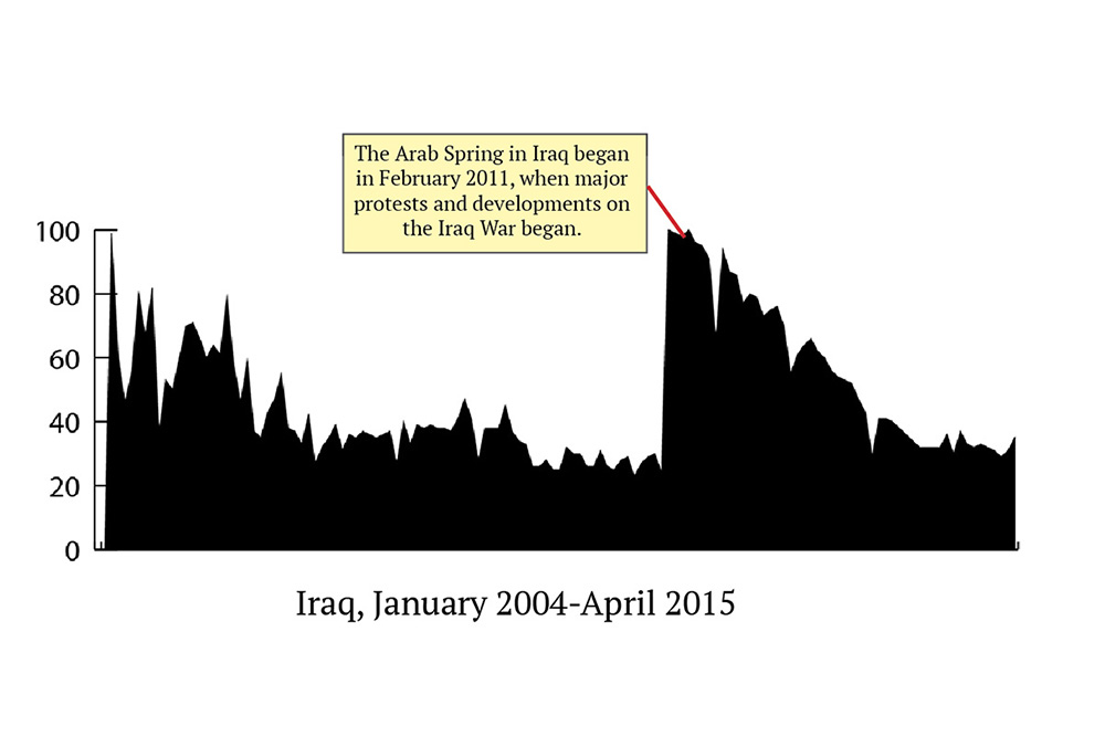 من المهم أن نلاحظ، الأحداث التاريخية على الخرائط ليس لها تأثيرها المباشر على البيانات، هناك عوامل لا تعد ولا تحصى يمكنها المساهمة في شعبية "الجنس" في جوجل. لكن انخفاضات أو ازديادات البحث الصارخة في هذه البلدان غالبا ما تجيء في نفس الوقت، لذا، أردنا استكشاف ذلك!