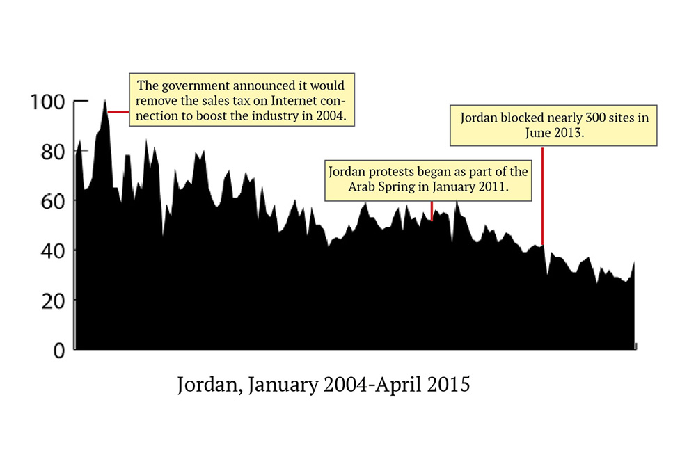 من خلال تتبع كلمة "جنس" ككلمة أنكليزية، في البلدان التي اللغة الإنجليزية فيها ليست اللغة الرئيسية، فرصة العثور على معلومات جنسية للقراءة قليلة. الإباحية غير قانونية في معظم بلدان الشرق الأوسط، لذا السكّان يبحثون عنها بطرق غير مباشرة وبعيدة.