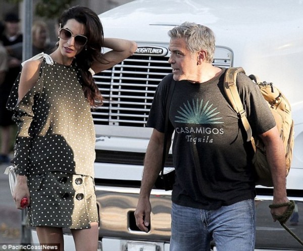 زارت امل علم الدين موقع تصوير فيلم زوجها جورج كلوني الذي يخرج حالياً فيلماً كوميدياً ولكنه اقتطع وقتاً رومانسياً قضاه معها في فترة الاستراحة بين المشاهد وتألقت أمل بتوب وتنورة سوداوين منقطين بالأبيض وحذاء أبيض أما جورج فارتدى ثياباً كاجوال.