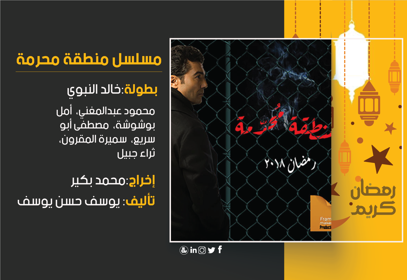 منطقة محرمة: تدور أحداث المسلسل حول رجل إعلامي توجد في حياته 5 نساء، منهم زوجته وأخرى طليقته وأم ابنه وثالثة تحكي له عن لعنة أصابت أرض معينة، ومن خلال حكايتها يحاول الوصول إلى سبب جعل هذه الأرض أرض محرمة.