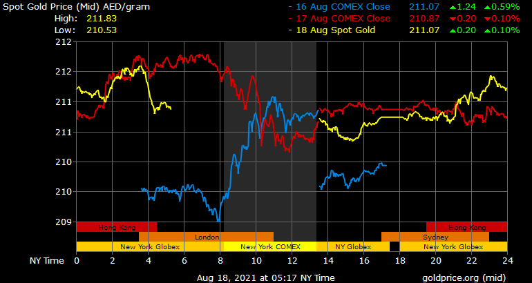 In the UAE, 24K gold prices increased Dh211 per gram on Wednesday. At the time of writing, 22K at Dh203.5, 21K at Dh194.25, and 18K at Dh166.5 per gram.