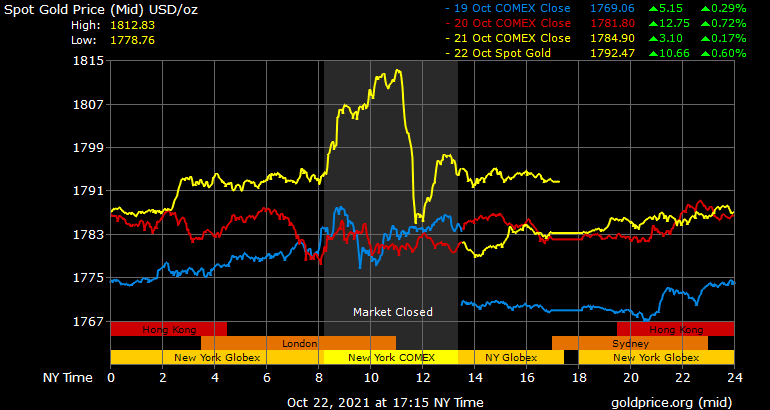 Spot gold was trading at $1,792.47 per ounce by 10 am UAE time.