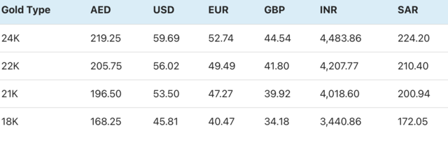 Gold Rate in Dubai - US Dollar, Euro, British Pound, Indian Rupee, and Saudi Riyal