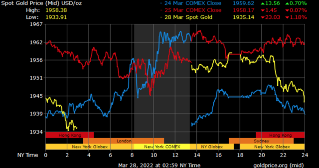Spot gold was trading at $1,935.07 per ounce by 10:59AM UAE time.