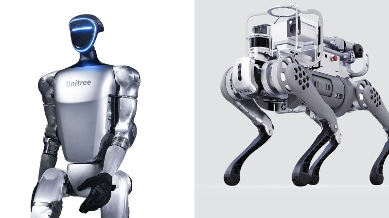 Unitree Robotics' humanoid robot G1 and robotic dog on the runway