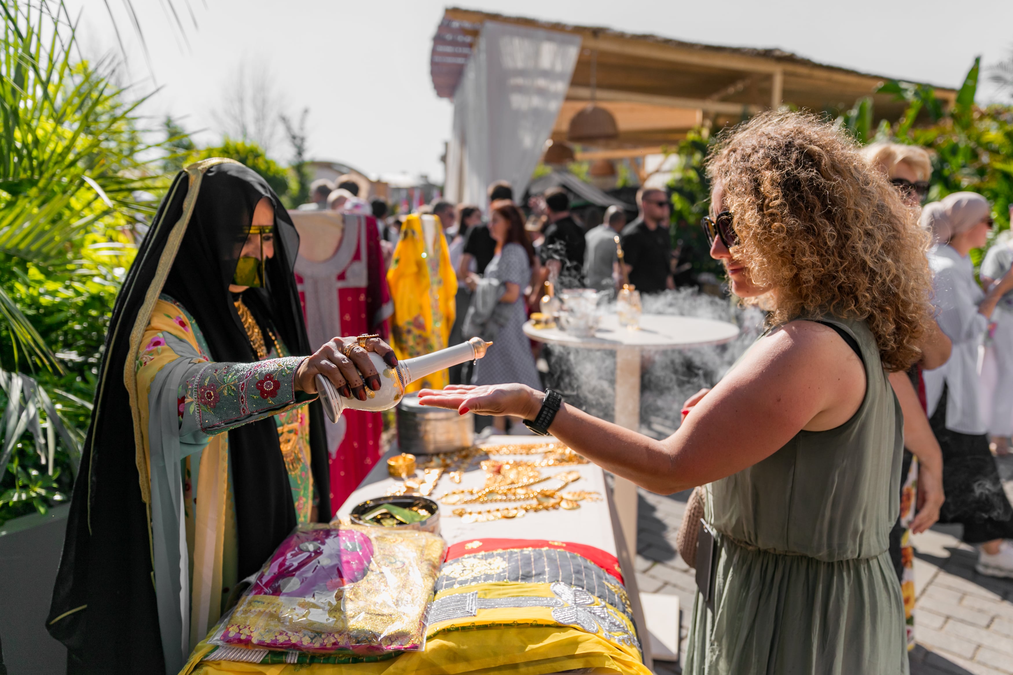 After the official opening, an Emirati wedding show was presented to the audience - showing the wedding traditions that have been handed down from generation to generation in the UAE for many decades. The bride is dressed in a traditional dress and the women take her to the groom's house. There, national rituals are performed. For example, 'Ayala', where people line up in two rows facing each other and collectively dance and sing to the sound of tambourines and drums.