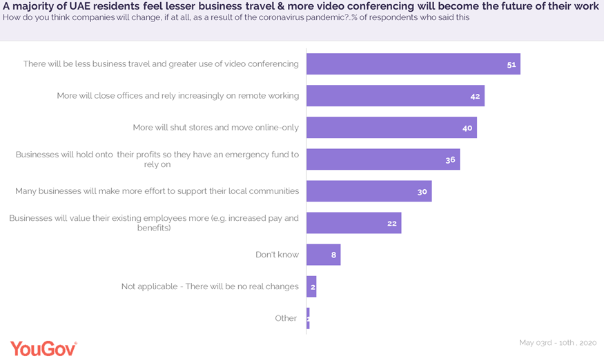 Alongside this, 36% believe profits will be retained by businesses in future to allow for an emergency fund in times of crisis. Some employees foresee attitudinal changes from companies in the UAE, with 22% believing that businesses will value their existing employees more, and 30% predicting companies will make more of an effort to support their local communities.