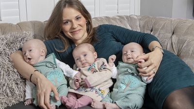 As they snuggle up together, triplets Oliver, Aurelia and Oscar are too young to know that one or two of them might not be here if it hadn’t been for their mother’s instinct.