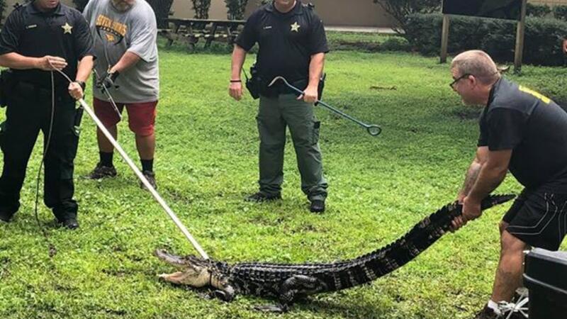 A Florida school district said resource officers helped a trapper capture an alligator spotted in the center of a middle school campus.