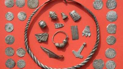 The find includes silver coins, rings, pearls, bracelets and a Thor's hammer from the era of 10th century Danish King Harald Bluetooth.