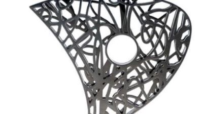 Works on show includes Ginane Makki Bacho’s “Cedar Tree” made from shrapnel, Nadim Karam’s “Walking Memory,” which bends stainless steel into calligraphy and an untitled, brightly painted tower by Charles Khoury.