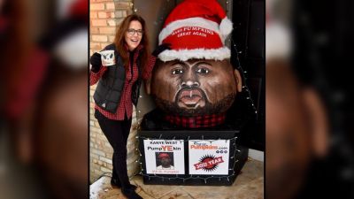 Artist Transforms Giant Pumpkin Into Kanye West Christmas Decoration