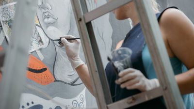 Echoing similar thoughts was Pakistani Shan Fazelbhoy who was painting abstract cubic images of a man and woman's faces on a centuries-old carpet to give a 3D effect. She said the art stopped passersby who asked questions and left in deep thought.