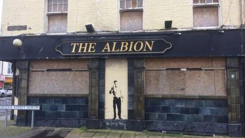 The outline of a figure with a bottle of beer in his hand has been drawn in the doorway of the Albion pub on Cleethorpe Road, in Grimbsy.
