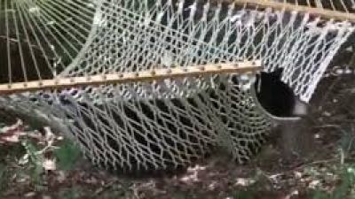 Michelle Baber posted a video to YouTube showing the bear she discovered swaying back and forth while lounging in the hammock behind her Asheville home.