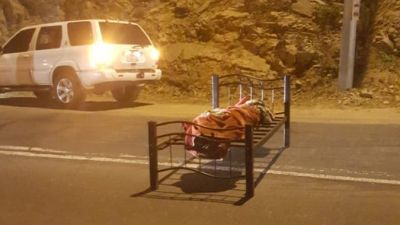 Drivers in Saudi were greeted with a macabre sight in the middle of a road in Abha area.