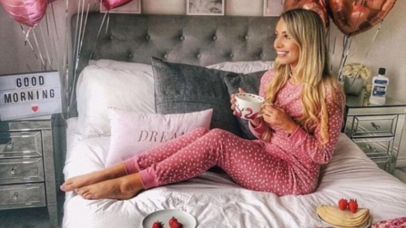 Scarlett London , 24, from London posted a photo, which was a paid ad for Listerine, posing on her bed surrounded by heart-shaped balloons with the caption: 'The best of days start with a smile and positive thoughts. And pancakes. And strawberries. And bottomless tea.'