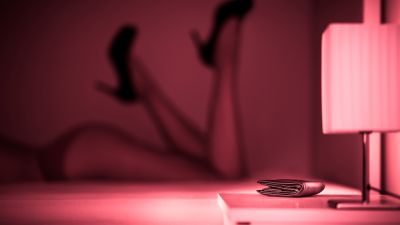 On the other, a young woman in skintight leather trousers and stilettos is strutting up and down the pavement, touting for business from passing cars.