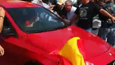 Footage shows the woman's car being mobbed and hit as she makes her way to the border.